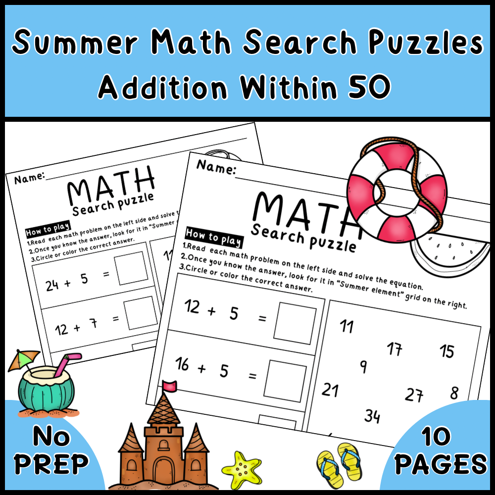 Keep math skills fresh this summer with these Summer Math Search Puzzles!